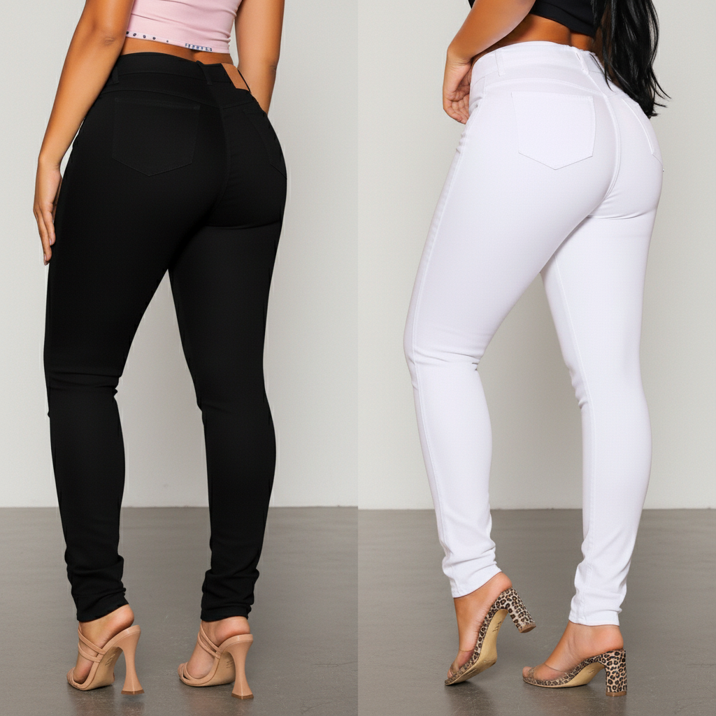 Kit Com 2 Calças Jeans Femininas Com Lycra Cintura Alta